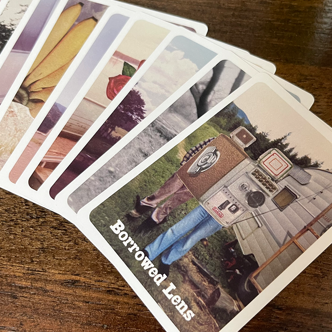 A pocket-sized oracle deck full of dirt, dust, and whimsy. These analog collages were created using my great grandmother's Polaroids. I received them after her passing in 2015. In 2017, creating the collages was a way to connect and process her life. The artwork reflects hard work, decent people, and an honest way of living. By layering a single piece of paper into the scenes, I added my own story to her history.